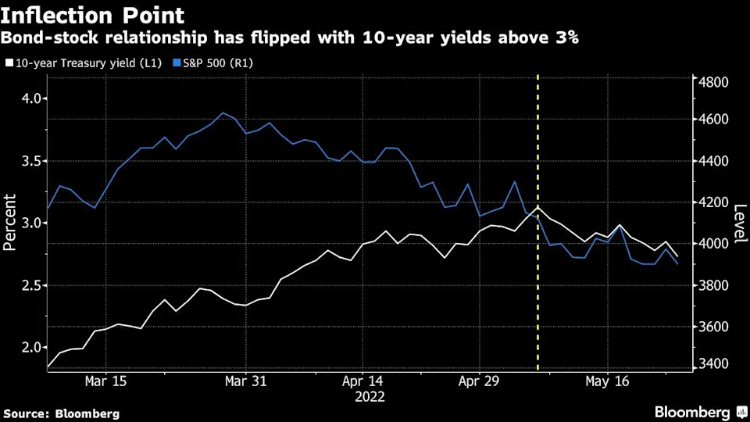 过去两周,市场似乎正开始逐渐从年内的“股债双杀”场景重新回到了更为传统的“股跌债涨”模式——在指标10年期美债收益率本月早些时候达到3.1%的峰值后,这种变化便体现得非常明显。策略师认为,债券与股票重新向“跷跷板效应”的转变是对当前金融状况恶化的承认,美联储抑制物价的努力将使世界陷入衰退。