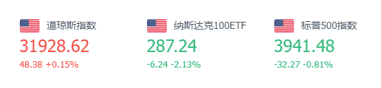 周二美股涨跌不一,纳指大幅收跌。道指涨48.38点,涨幅为0.15%,报31928.62点;纳指跌270.83点,跌幅为2.35%,报11264.45点;标普500指数跌32.24点,跌幅为0.81%,报3941.51点。