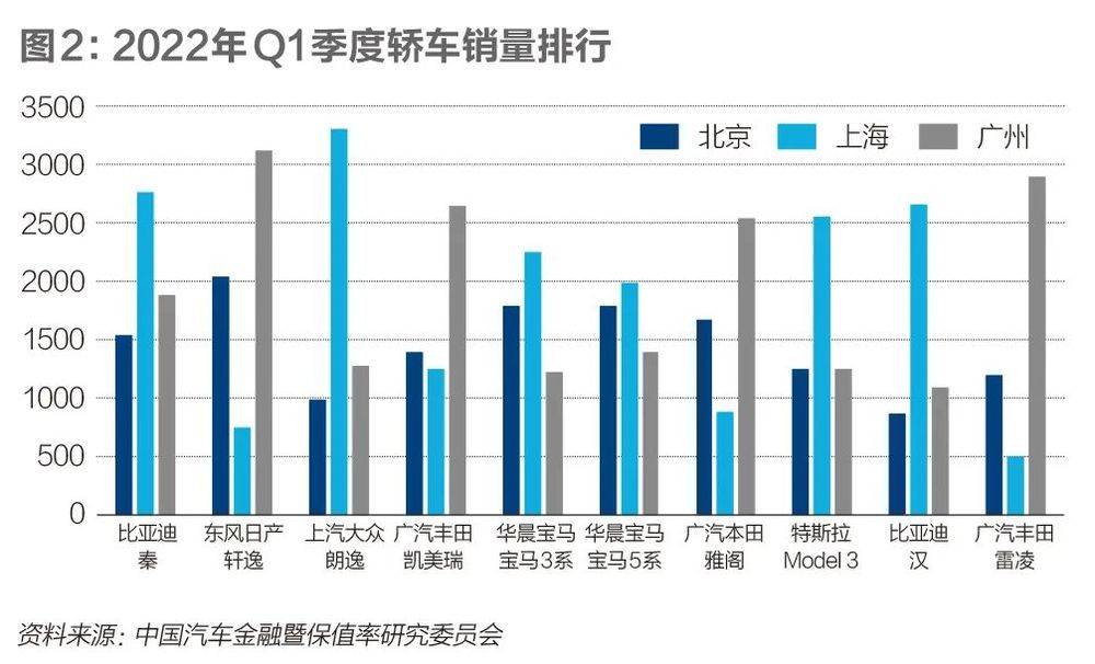在北上广一线城市,购车从来不是易事。当好不容易摇到了号牌以后,哪些车型会受到三大城市的青睐呢?财经汽车以中国国际贸易促进委员会汽车行业分会汽车金融暨保值率研究委员会提供的2021年和2022年一季度新车上险量数据加以探析。