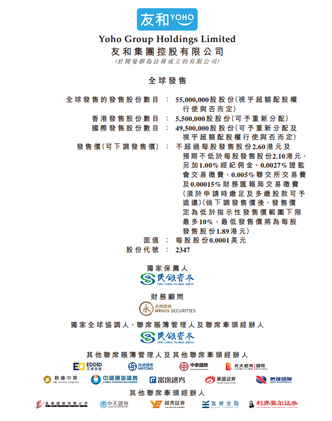 华盛资讯5月26日消息,友和集团将于2022年5月26日至2022年5月31日招股,每股发售价2.1港元-2.6港元,公司拟发行5500万股,每手2000股,场费5252.41港元。预期股份将于2022年6月10日上午九时正开始在联交所买卖。前往新股中心,申购新股>>