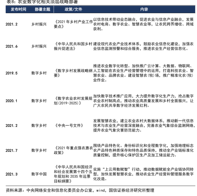 农业数字化相关顶层战略部署(来源:网信办、Wind)