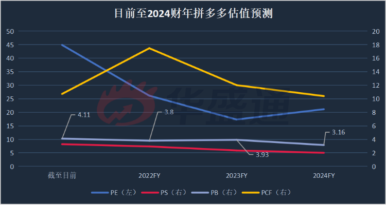 目前至2024财年拼多多估值预测(数据来源:彭博)