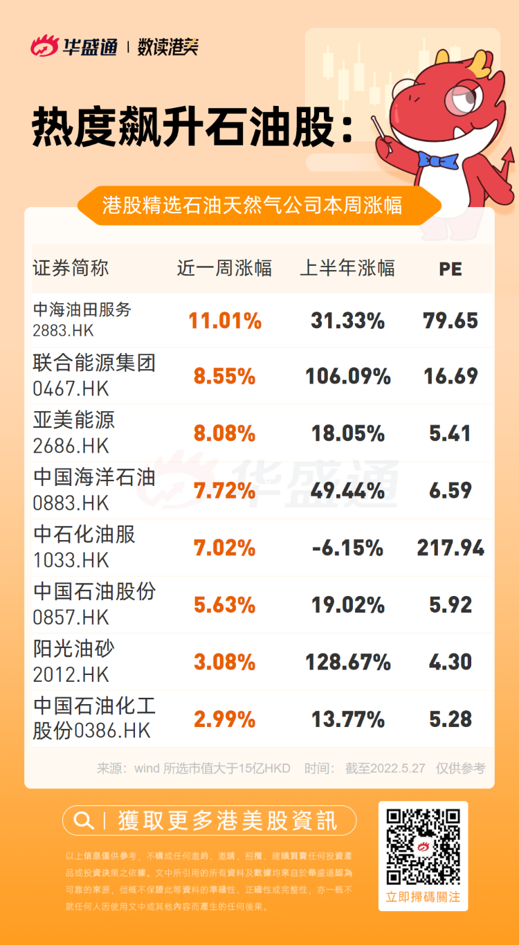 本周,港股能源板块掀起新一轮攻势。大型石油股连日上涨,截止周五收盘,中国油田服务周涨11%,中国海洋石油周涨7.7%;煤炭股同样表现出色,其中兖矿能源周涨10%,中煤能源周涨9.6%。