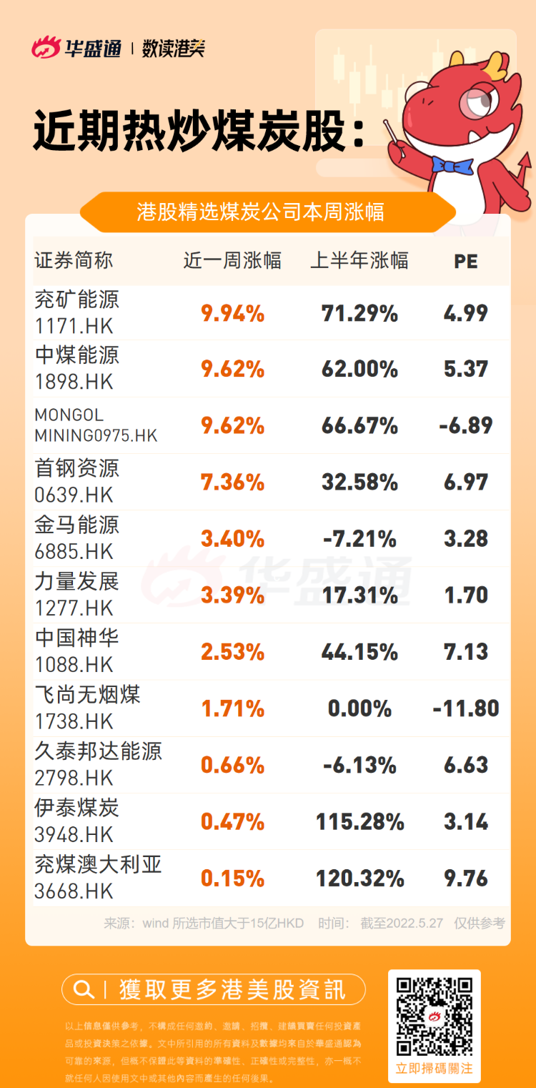 据Wind数据统计,今年以来,港股市场至少4家大型能源公司股价翻倍,联合能源集团累计涨幅106%,伊泰煤炭累涨115%,兖煤澳大利亚累涨120%,阳光油砂更是大涨128%(截至5月27日收盘,仅计算值大于15亿港币公司)