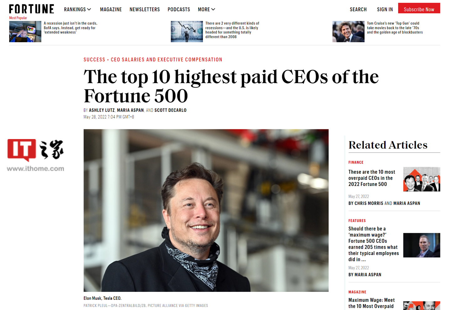 IT之家 5 月 28 日消息,《财富》杂志今日发布了一份榜单,盘点了财富 500 强企业中薪酬最高的 10 个 CEO。