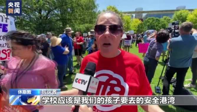 央视记者 许弢:在我右手边就是休斯敦的乔治·布朗会议中心。在尤瓦尔迪市罗布小学枪击事件发生仅几天后,全国步枪协会年会在这里如期举行,引发了众多民众的愤怒,他们强烈要求解决美国的枪支暴力问题。