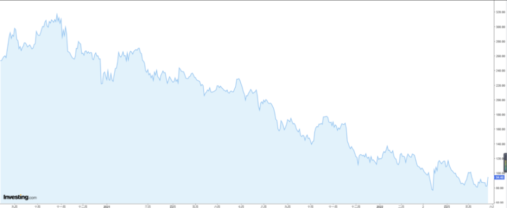 在2020年10月股价达到纪录高点319.32美元之后,阿里巴巴便开始一蹶不振,在今年3月一度跌至73.28美元,创近6年新低,最大跌幅达77%!在昨日大幅上涨之后,今年迄今阿里的股价仍下跌了逾20%。