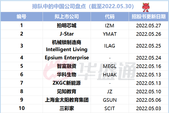 中国公司方面,上周共有4家中国公司更新招股书,分别为来自深圳的拍明芯城、来自香港的机械锁制造商Intelligent Living、来自台湾的碳纤维制造商J-Star以及来自香港的Epsium Enterprise。
