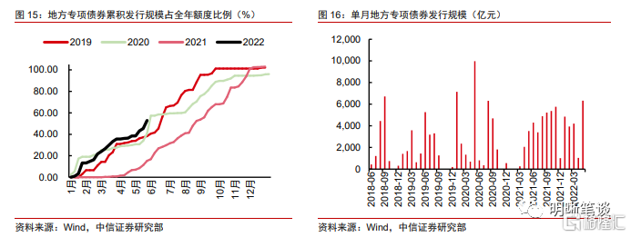 如要在6月底前“基本发完”今年新增专项债额度,预计底线要求在85%至90%,那么到6月底,年内新增专项债发行规模需达到3.1万亿元至3.3万亿元,对应6月专项债净融资额将创下历史最高值,达到1.5万亿元左右。3月29日召开的国务院常务会议,部署用好政府债券扩大有效投资,促进补短板增后劲和经济稳定增长。据21世纪经济5月6日报道,多位地方财政系统人士处消息,五一假期期间监管部门紧急通知地方,要求地方进一步加快专项债发行节奏,2022年新增专项债券须于6月底前基本发完。今年是典型的“专项债发行前置”的一年,假设监管对“基本发完”的要求为85%至90%,那么到6月底年内新增专项债发行规模需达到3.1万亿元至3.3万亿元。这意味着二季度发行量将达到1.5万亿元左右。这将成为专项债单月净融资额的历史最高值,目前历史最高是2020年5月,单月新增专项债9980亿元。