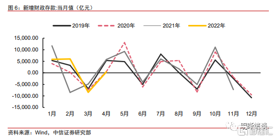 财政收支将向市场投放部分资金,但考虑到政府债融资情况,料6月政府存款仍将增加约7000亿元,带来较大的流动性缺口。结合前文对于收入支出(预计-15000亿元)以及政府债融资(预计+17000亿元)的分析,预计6月政府存款可能增加2000亿元,向市场回笼一定规模的流动性。对比往年,同期政府存款基本减幅在5000亿元附近,今年6月缺口缩小,代表流动性投放减弱;同时,还需要警惕政府债缴款与财政支出之间存在时滞,在部分时点资金面可能会快速收紧的问题。