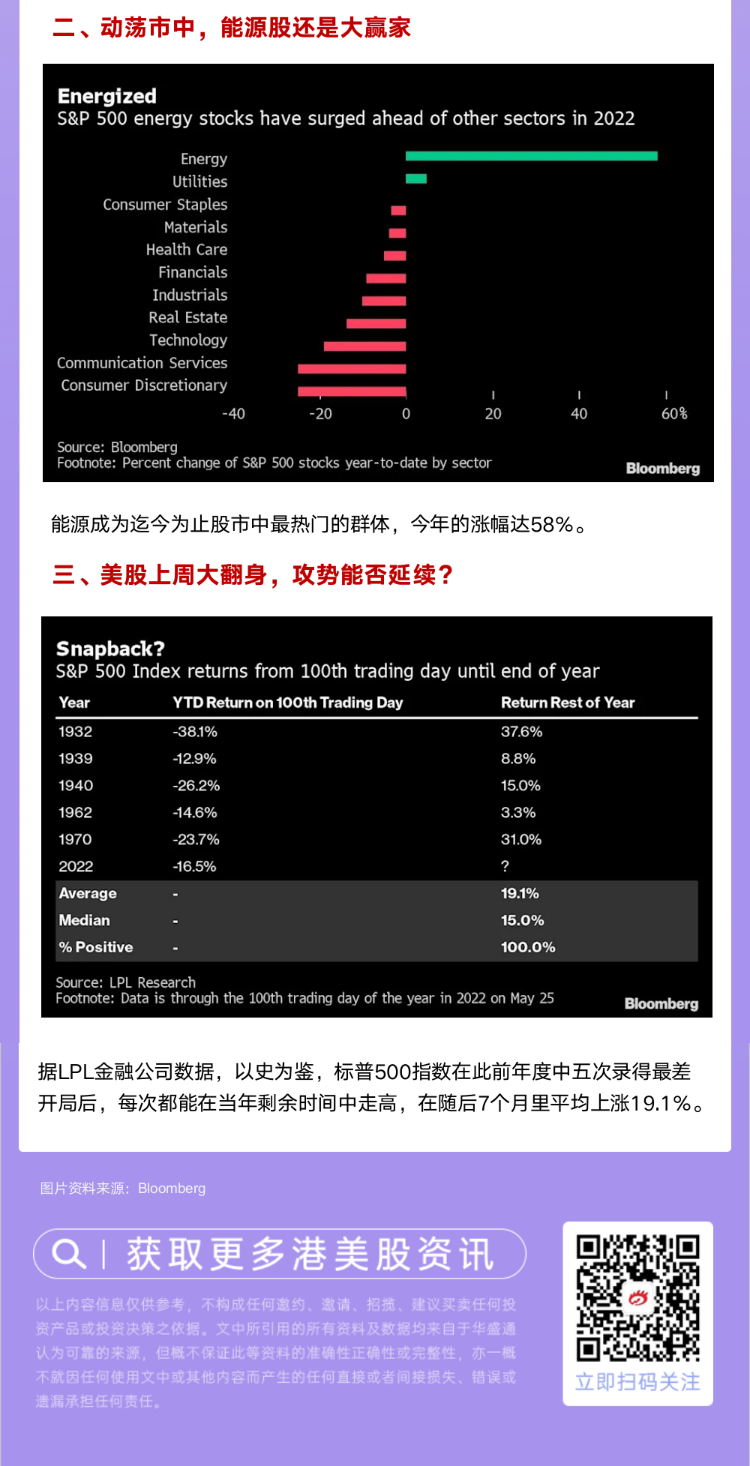 美联储再度“救市”!随着市场对美联储激进加息预期降温,美股上周久违大反弹,道指 $DJI 终结近百年来最长连跌,周涨逾6%;标普500指数 $SPX 周涨6.58%,纳指 $IXIC 涨6.84%。