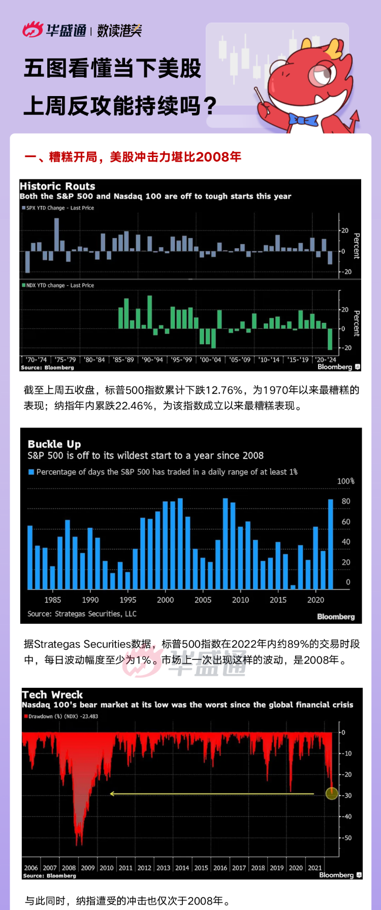 今年以来跌跌不休的美股终于上演大翻身,美股究竟回调到哪一步了?连跌颓势结束了吗?彭博给出五张图,助力看懂当下美股: