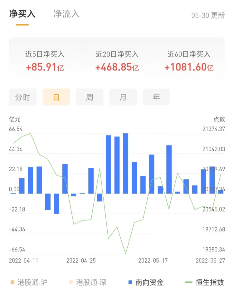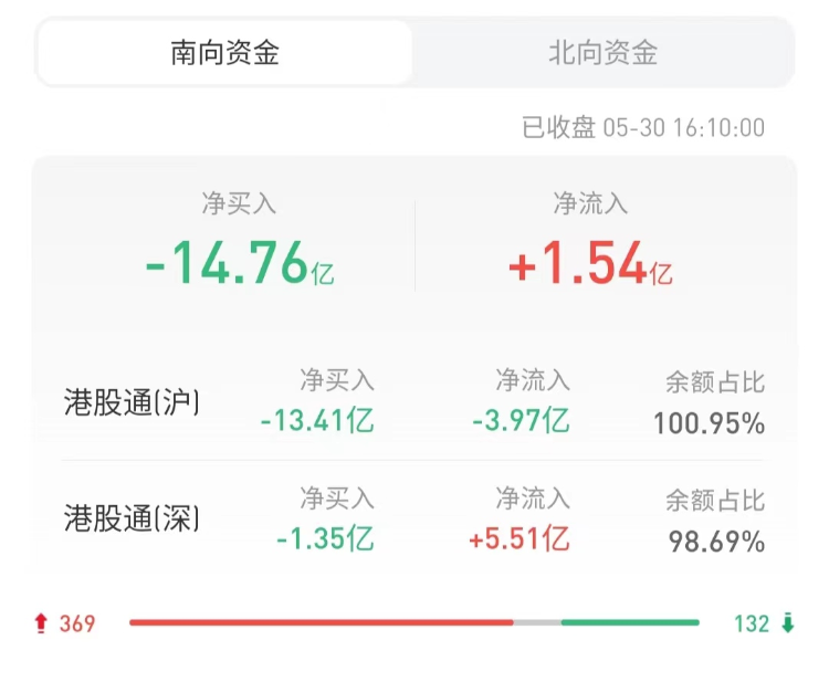 南下资金今日净卖出港股14.76亿港元,其中港股通(沪)净卖出13.41亿港元,港股通(深)净卖出1.35亿港元。上一交易日净买入港股4.09亿港元。