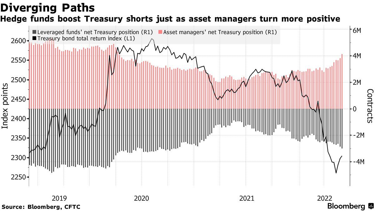 在传统资产管理公司更看好美债之际,对冲基金加大力度看跌美债价格