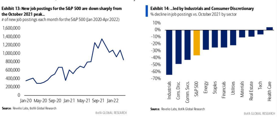 例如美银全球研究的Revello研究团队跟踪的总职位发布数据,自去年10月的高位暴跌了22.5%,创下2019年以来的最大回撤跌幅。而其他几个劳动力市场指标也表明,美国就业市场即将崩溃。