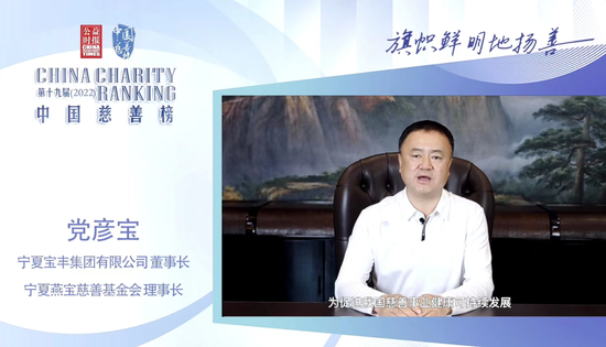 年度慈善家——宁夏宝丰集团有限公司董事长、宁夏燕宝慈善基金会理事长党彦宝,笃行教育助学十一年,累计捐资27.03亿元,让25.67万名青年学子圆梦大学,用知识之伟力,改变人生与家国命运。福耀玻璃工业集团股份有限公司副董事长、河仁慈善基金会发起人曹晖,金光纸业(中国)投资有限公司总裁、黄奕聪慈善基金会名誉理事长黄志源, 安踏集团荣誉董事长丁和木、安踏集团董事局副主席丁世家、安踏集团董事局主席丁世忠,过去一年大力投入慈善事业,助力行业和社会发展。