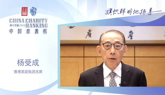 慈善传承楷模——香港英皇集团主席杨受成、香港英皇集团副主席杨政龙父子慈善家,多年来深耕慈善,在儿童保护、教育兴学、赈灾济贫、长者关怀等方面的义举遍布香港及内地各个领域,已将仁爱之心镌刻进血脉里。