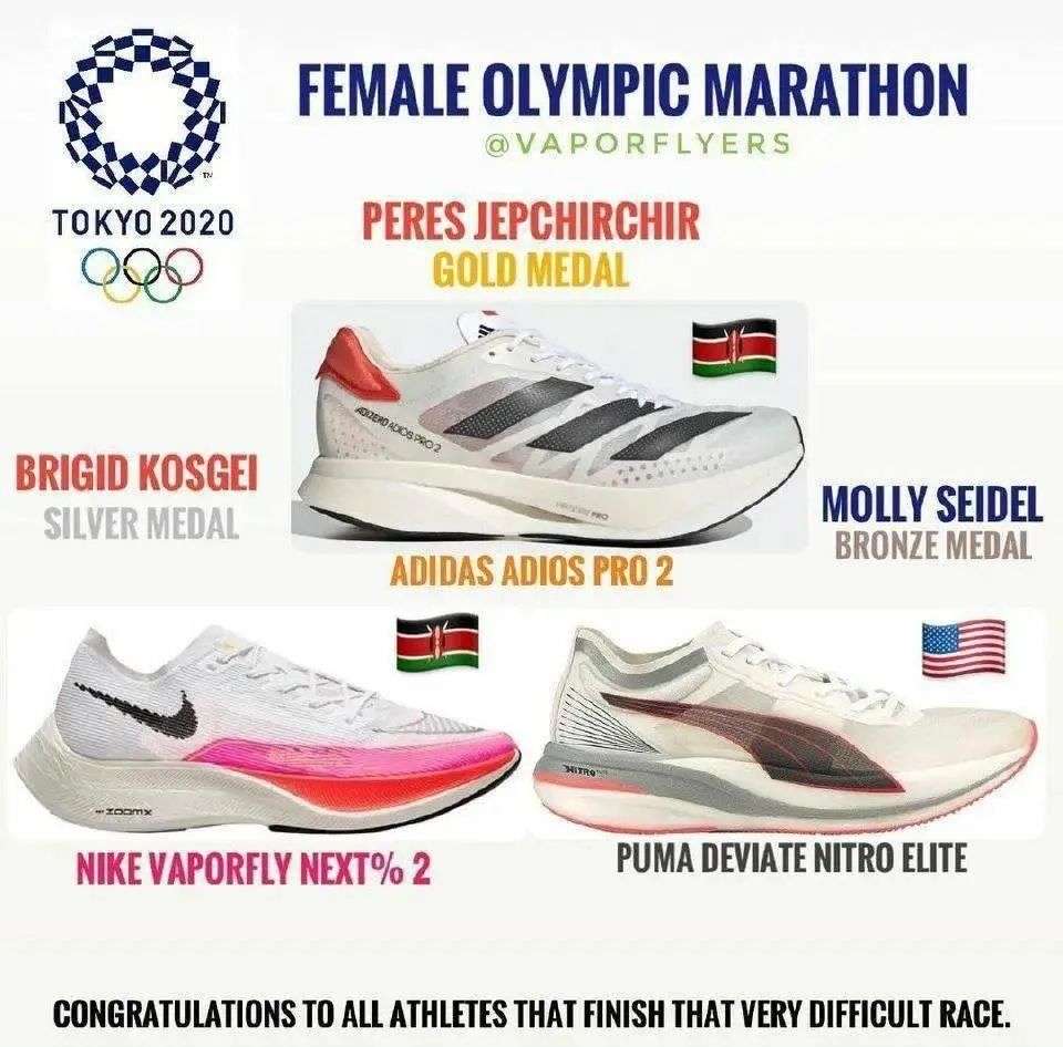 ▲东京奥运会女子马拉松前三名上脚鞋款,图片来源:Instagram