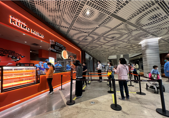 在商场一楼,位于入口处的Kumo Kumo芝士蛋糕店,门前早已排起了长队。