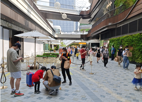 浦东三林前滩太古里,是浦东首个恢复线下营业的大型购物中心,由于防疫和复业事项的安排到位,商场的人气恢复不错。