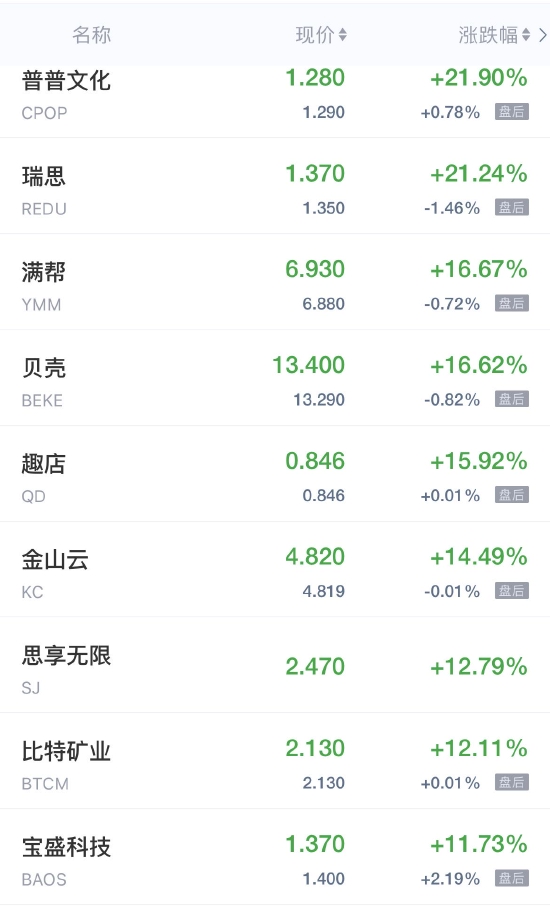 (截图来自新浪财经APP 行情-美股-中概股热门板块)下载新浪财经APP