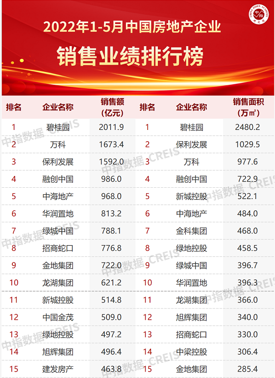 前5月千亿房企仅三家,top100门槛不足百亿