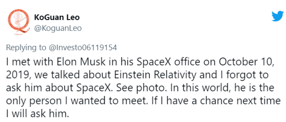 也是2019年,他遇到了马斯克,聊了不少关于爱因斯坦相对论的事情,两人相谈甚欢,以至于忘了向马斯克询问有关SpaceX的事情。