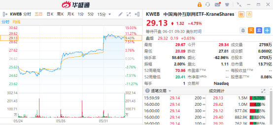 追踪中概股的中国海外互联网ETF——KWEB在5月份获得资金净流入4.6亿美元(截至5月26日),在过去的四个交易日大涨17%。