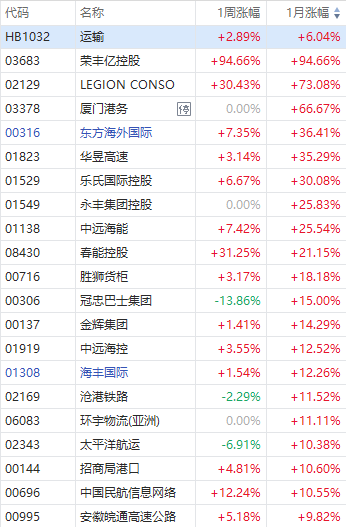 据Wind数据统计,近一个月以来海运板块15只港股标的平均涨幅+10%,超越大盘指数表现,多只港股航运股创下股价历史新高。