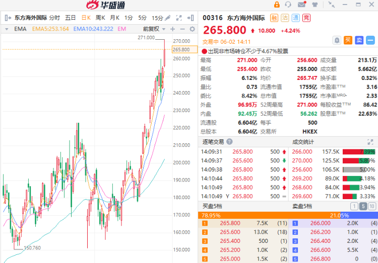 东方海外国际的集运业务包括在太平洋区、大西洋区、欧亚地区、澳洲与亚洲地区。5月以来,东方海外国际股价最高涨28%,今日再创历史新高。