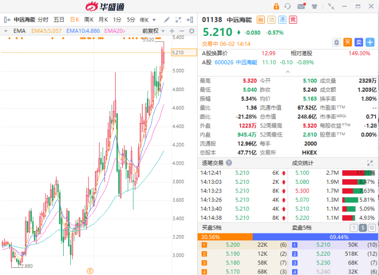 2. 中远海能:港股油运股龙头,5月以来涨超26%