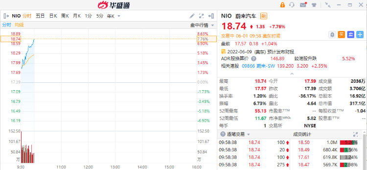 消息面上,6月1日美股盘前,“蔚小理”相继发布5月交付数据,蔚来汽车5月交付量为7,024辆,2022年至今,蔚来共交付37,866辆汽车,同比增长11.8%;小鹏汽车5月交付量为10,125辆,同比增长78%,截至2022年5月31日,小鹏汽车全年交付量达到53,688辆,同比增长122%;理想汽车5月交付11496辆理想ONE,同比增长165.9%,自交付以来,理想ONE累计交付量已达171,467辆。