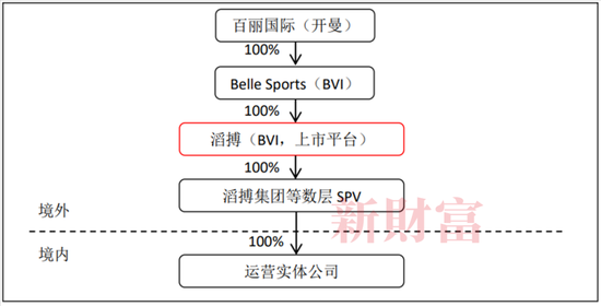 滔搏主要从事阿迪达斯、耐克等一、二线体育品牌服饰的代理销售业务。2018年9月,百丽国际在BVI成立了百丽体育(“Belle Sports”),并将百丽国际的运动服饰销售业务全部归集到该公司(图3)。此后,滔搏以IPO方式在港股上市。
