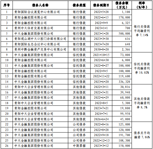 其中,银行借款68.17亿元、信托借款73.49亿元、其他借款30.08亿元、公司债54.5亿元、中期票据27亿元。