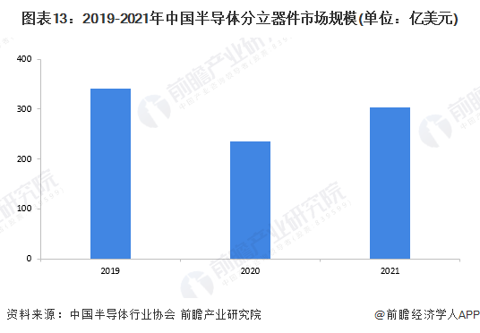 受益于国家产业政策对新兴产业的大力支持和对传统行业的升级改造,我国半导体分立器件行业的市场规模稳步增长。2019-2020年,我国半导体分立器件(包含光电子器件、传感器)市场容量呈波动态势,2021年约为304亿美元。物联网、可穿戴设备、云计算、大数据、新能源、医疗电子、VR/AR、安防电子等新兴应用领域将成为国内半导体分立器件产业的持续增长点。