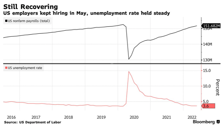 “美国5月份新增就业岗位超过预期,表明企业对需求和经济前景仍有信心。”