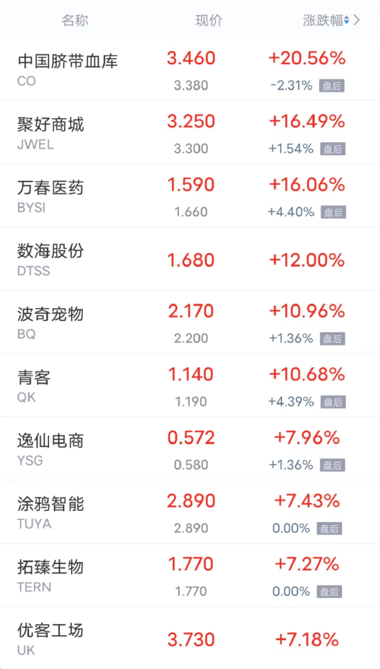 (截图来自新浪财经APP 行情-美股-中概股热门板块)下载新浪财经APP