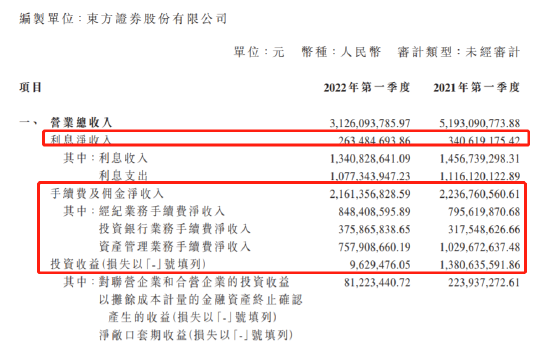 具体来看,东方证券经纪业务收入8.48亿元,同比增长6.63%;投行业务收入3.76亿元,同比增长18.36%;资管业务收入7.58亿元,同比下降26.39%;自营业务收入由正转负,亏损6.42亿元;投资收益只有962万,同比下滑逾90%;其他业务收入12亿,下滑38.31%,公司称子公司大宗商品销售收入减少。