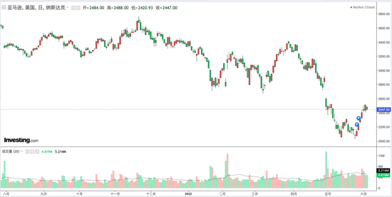 亚马逊的股价短暂地受到了拆股消息的利好推动,但是,后疫情时代电子商务行业的需求承压,则一直在打压公司的股价。因此,自从拆股消息公布以来,亚马逊的股价事实上已经累计下跌了12%左右。