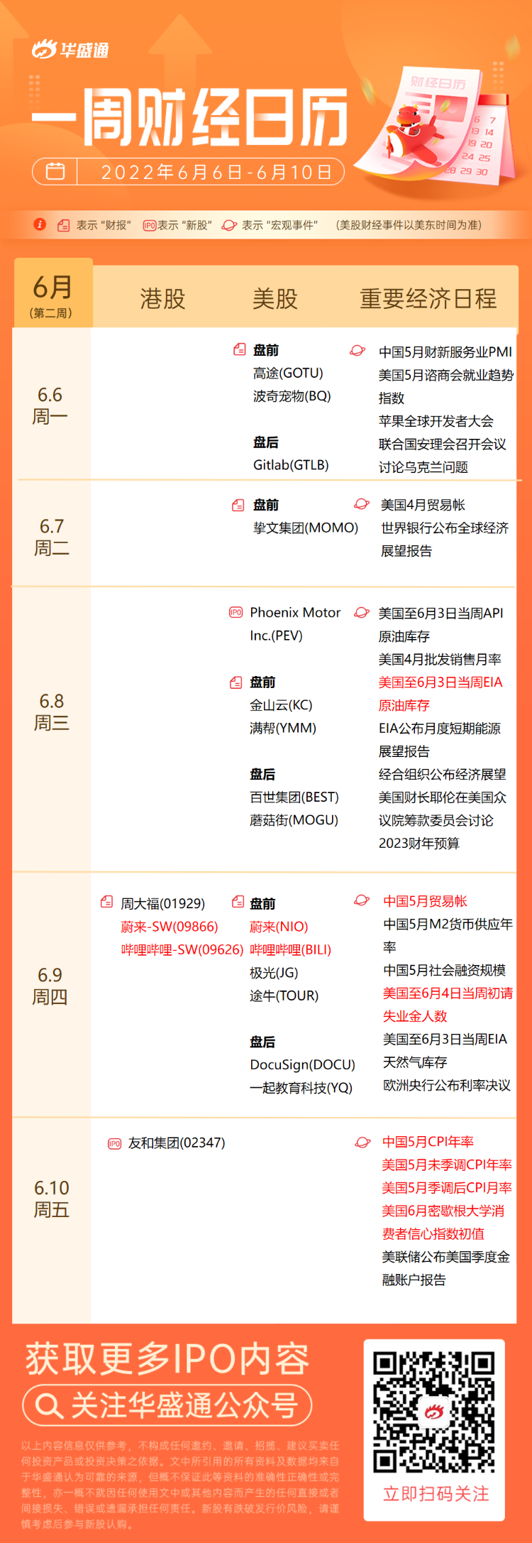 港股新股方面,友和集团(02347.HK)将于周四(6月9日)公布配售结果及开启暗盘交易,周五正式挂牌上市。该公司为香港最大的以电子产品及家庭电器为主的电商平台,市场占有率约为5.6%,被称为“港版京东”,并在香港所有电子商务平台中位列第三。公司平台拥有超2.3万项商品组合,已建立注册会员超过80.7万名的客户群。