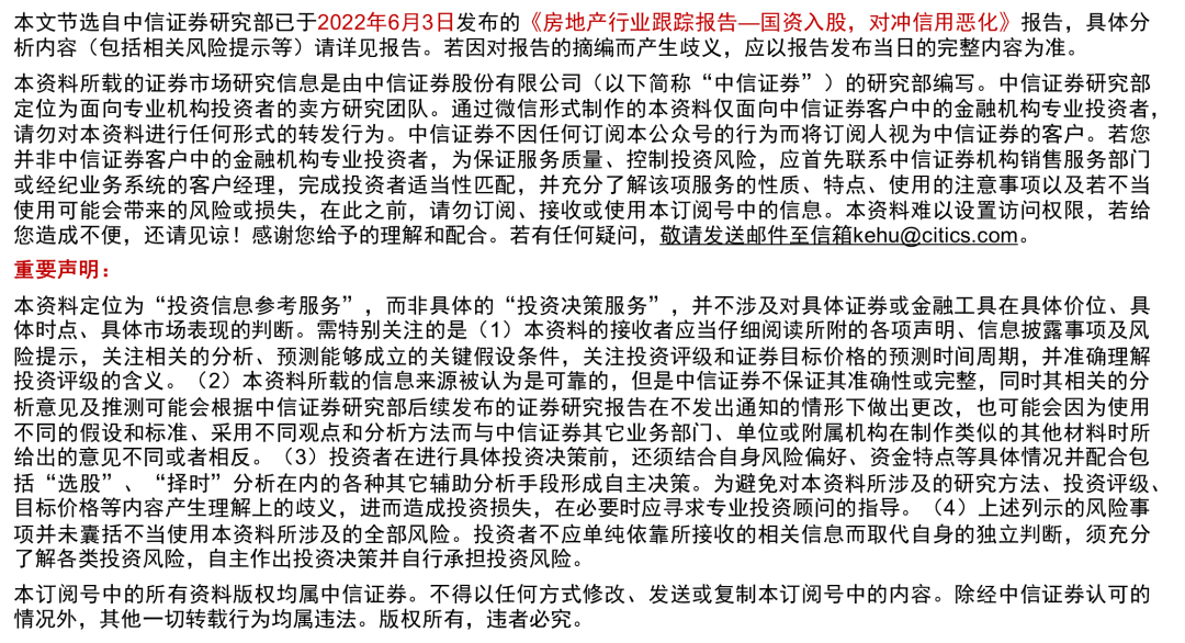 我们认为,阻碍股权合作开展和项目并购的核心原因,是房价没有止跌,销售持续下行,企业投资信心不足。不仅在并购和股权合作方面,在拿地方面,一些原本积极的企业同样存在拿地不足的现象,且2022年5月新推货仍不足。我们相信,随着按揭贷款利率的下降和限购等政策的放松,下半年销售可能回暖,类似建业地产之类的股权合作化解信用风险的案例将会更加常见。