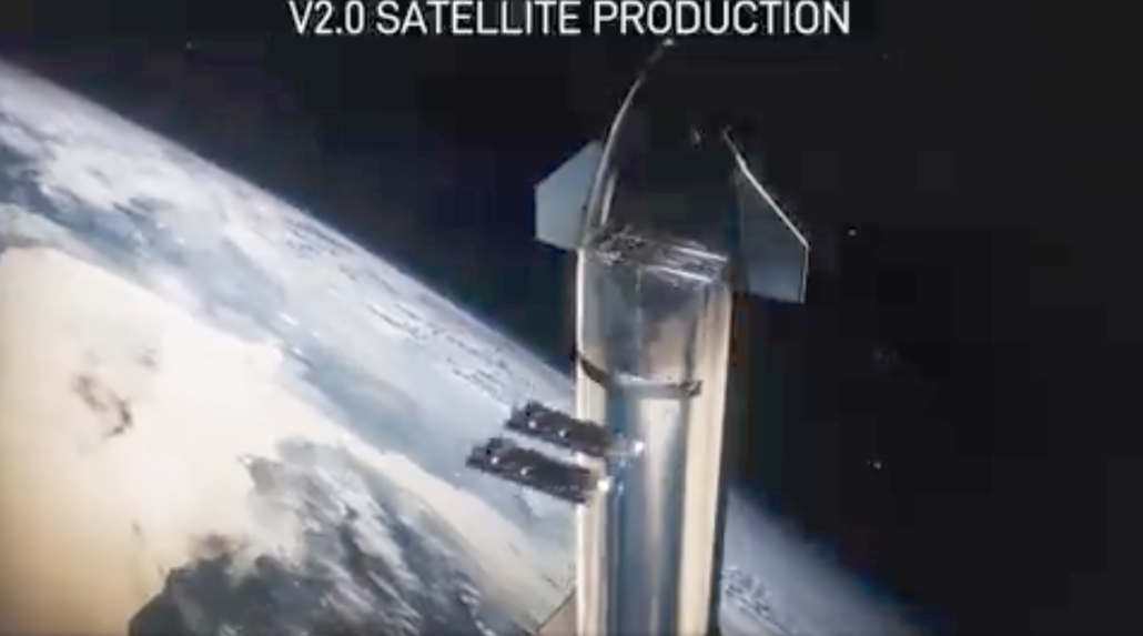 该演示文稿通过显示火箭上级的渲染分享了有关 Starlink 发射的信息,该火箭也被称为 Starship,在太空中一次发射两颗卫星。