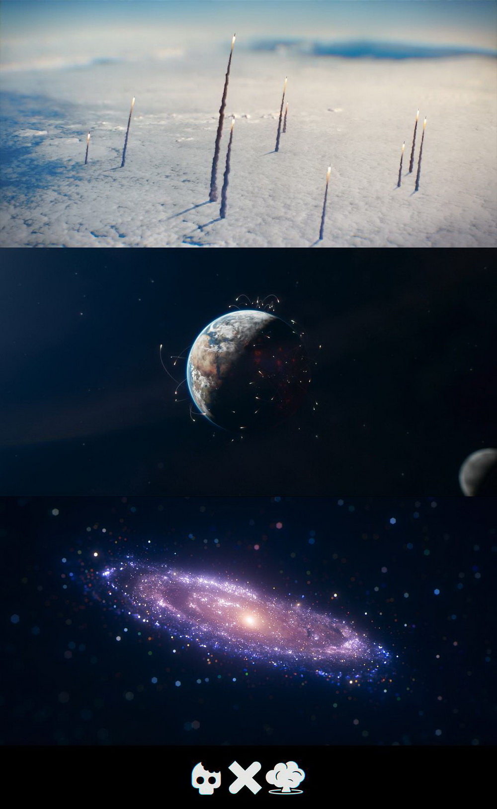 盘绕的星系宏伟壮观、光彩绚丽。配乐逐渐增强到歌剧式的高潮……