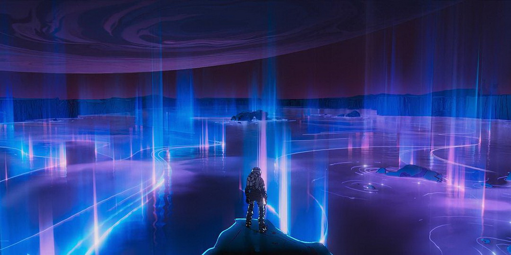 在动画制作时,每一部小说最华彩的部分都被不遗余力地展示,在《机器的脉搏》中,以最绚烂的场景还原了作者的文字:“玛莎输入指令,命令头盔镜显示整个硫黄平原的电荷分布图,并把对比度调到最大。她眼前的大地闪烁了一下,然后亮起一片仙境般的炫彩。流光溢彩!一层又一层的光芒,堆叠成一片光之海,从淡玫瑰色到北极蓝色,无数层柔和蜡彩,无数层迷宫,叠加成一大团纷繁的光彩,正在硫黄地层中,轻轻律动着。仿佛是她脑海中的烦乱思绪,被切换成了可见光。”