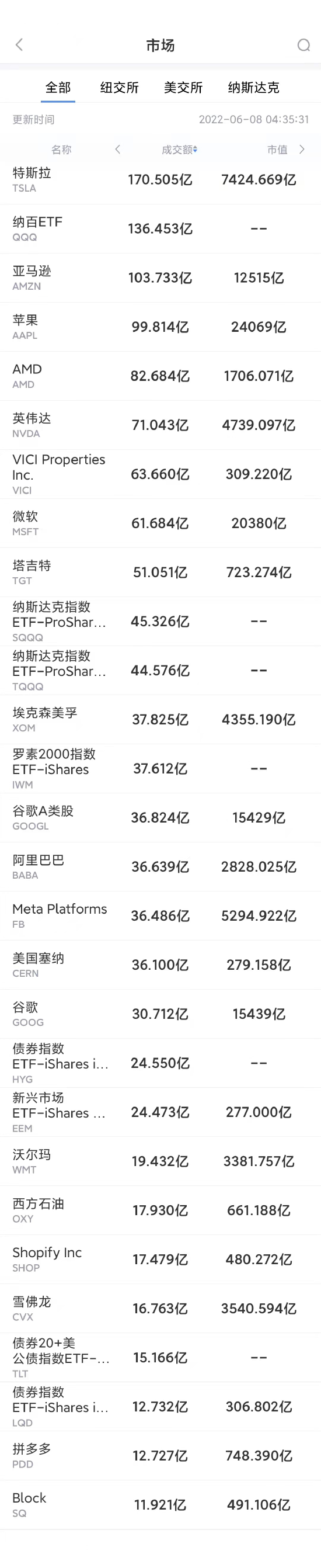 以下为美股当日交易最活跃的20只股票(按成交额):