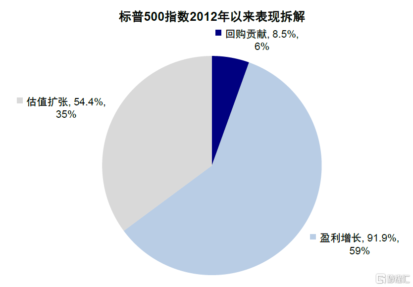 回购对美股有多重要?在市场常识印象中,美股上市公司利用低息环境大量回购,进而增厚EPS支撑股价,这一“财技”似乎成为美股上涨的最主要动力,因此容易得出回购一旦减少,美股也会相应承压的结论。然而实际上,从美股表现拆解上来看,回购虽然是美股的重要组成部分,但远没有想象中的那么重要,更多起到锦上添花的效果,内生盈利依然是最主要贡献。