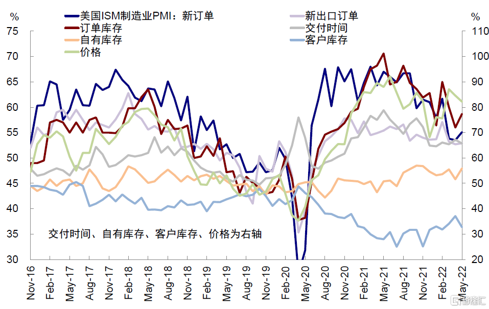图表45:5月ISM制造业PMI中新订单、产出有所抬升,潜在需求仍较强劲