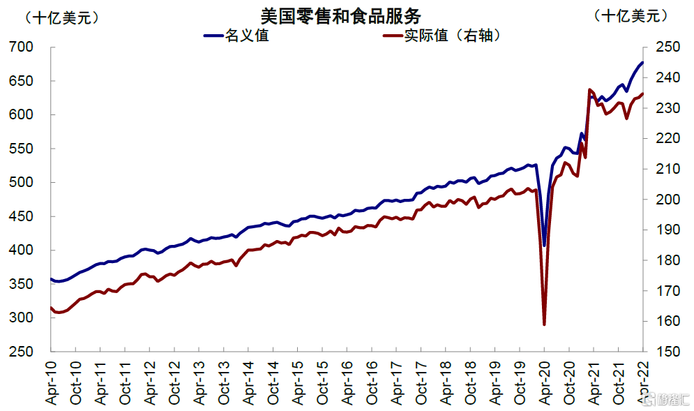 图表43:4月美国零售销售环比抬升0.9%,扣掉价格的实际值也同样改善