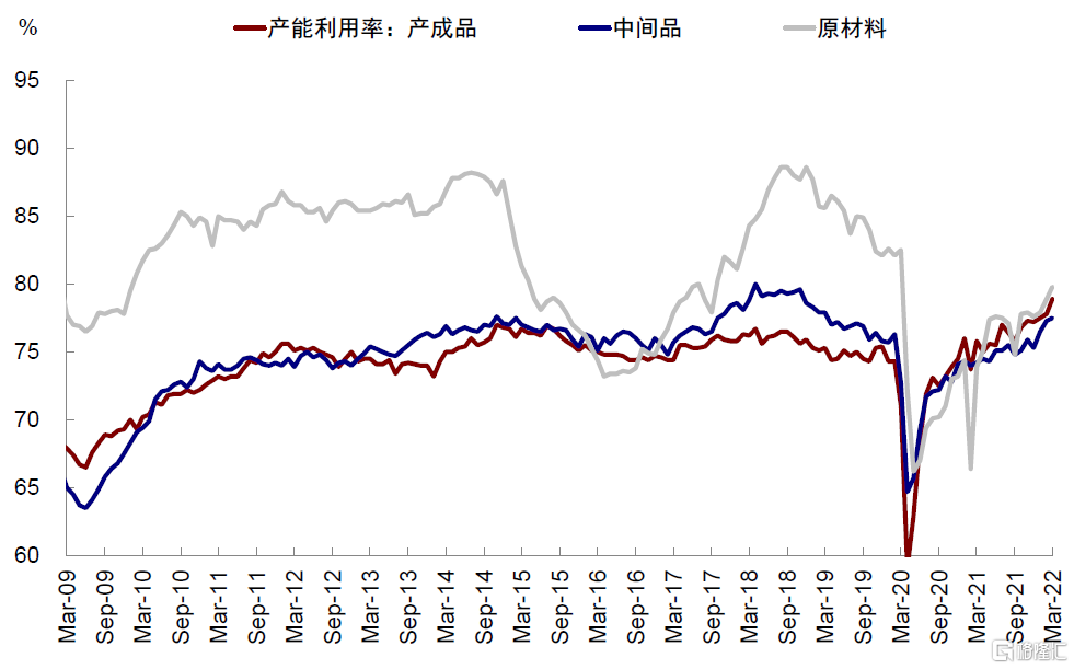 从影响投资的要素看,需求和能力基本具备,但产能和库存条件在部分行业尚不完全具备,需要观察。美国疫情以来的需求更多通过外部供给满足,本土供给还未充分释放,这一点从美国上游尚未完全修复的产能利用率以及相对偏高的原材料库存都可以看出。因此,接下来投资周期能否开启将取决于需求和能力与产能之间的“赛跑”。在产能完全修复前,过于严厉的货币紧缩反而会抑制需求。