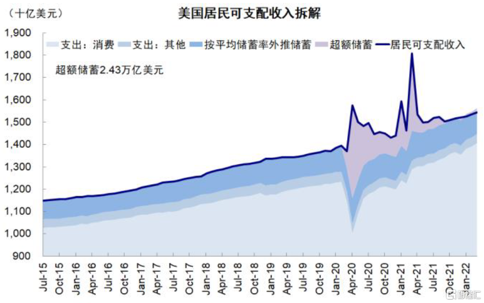 图表50:美国居民超额储蓄存量仍高达2.43万亿美元,理论上可以支撑需求而不至快速回落